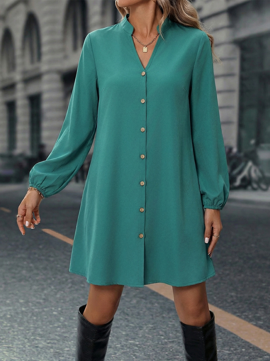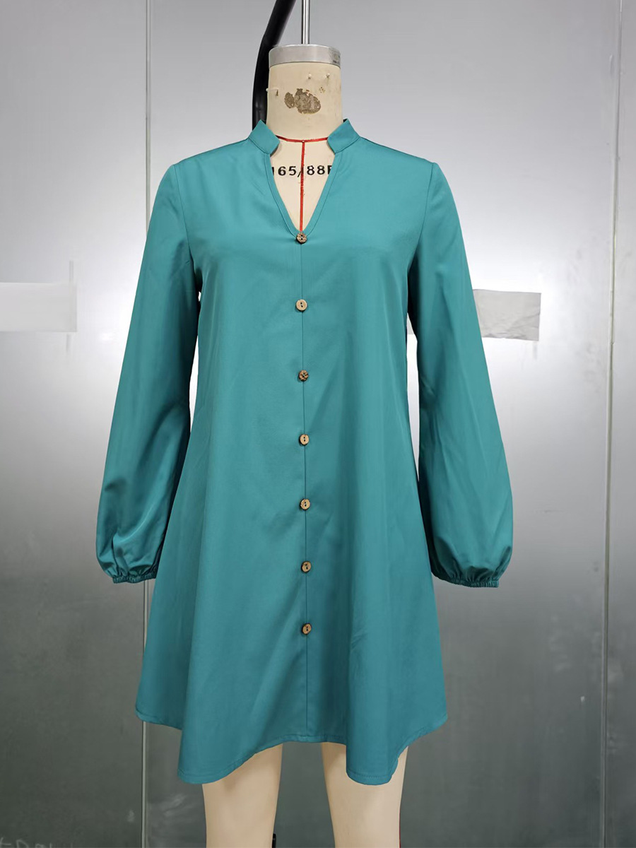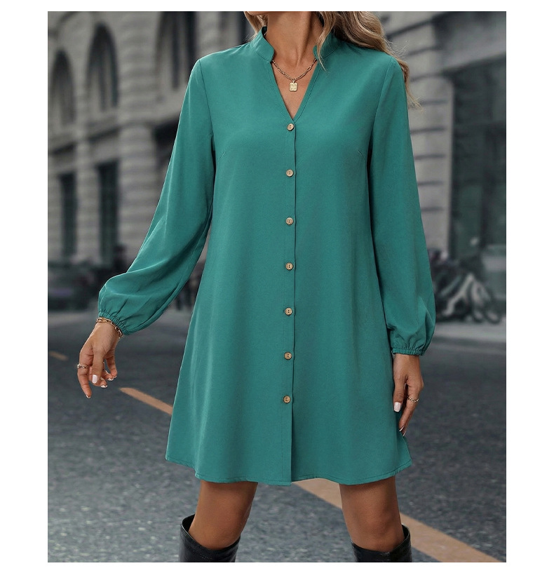 European And American-style Fashion Solid-color Long-sleeve Dress